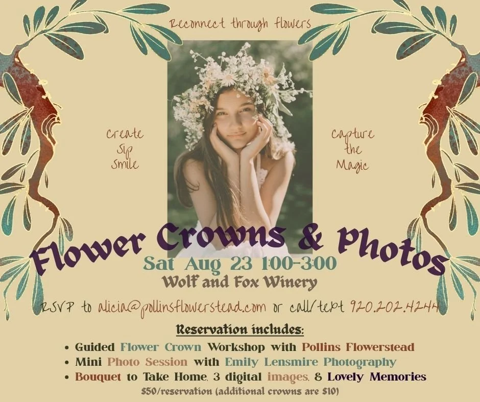 Join us at Wolf and Fox Winery for an unforgettable afternoon of wine, blooms, and beautiful moments.